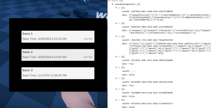 Each object in the scene that needs saving is given a GUID, the save system will then request serialized data from the script interface and send it back when loading the save.